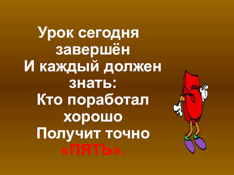 И каждый должен знать: Кто поработал хорошо Получит точно «ПЯТЬ».