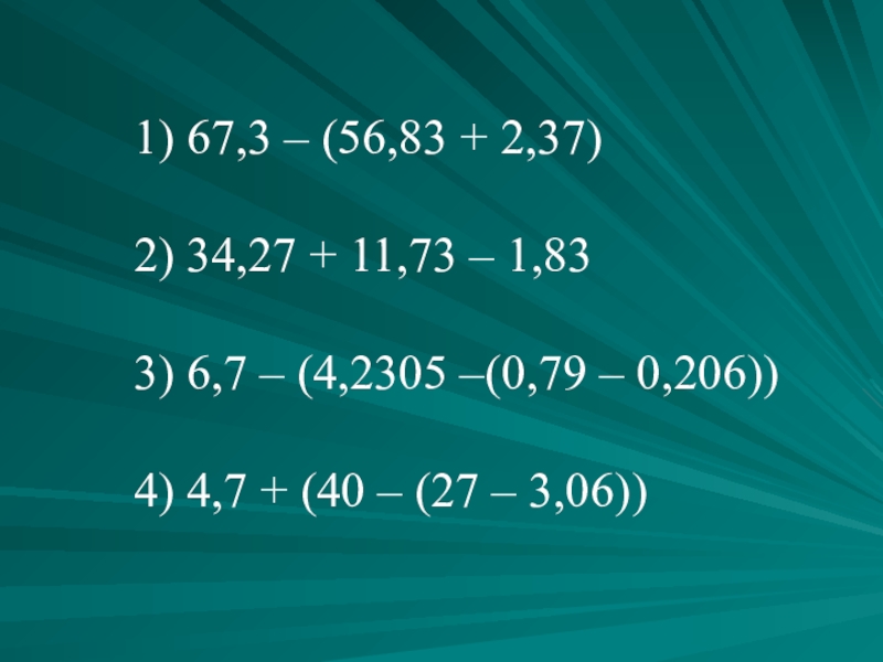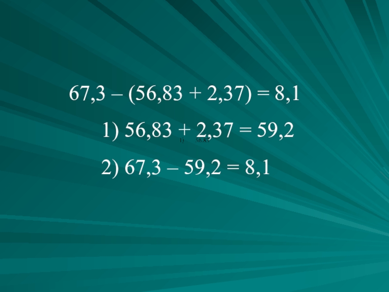 Слайд 81) 67,3 – (56,83 + 2,37)