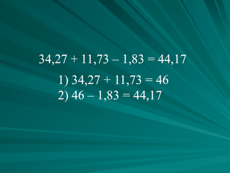 Слайд 1034,27 + 11,73 – 1,83 = 44,17