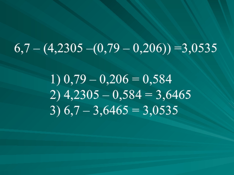 Слайд 116,7 – (4,2305 –(0,79 – 0,206)) =3,0535