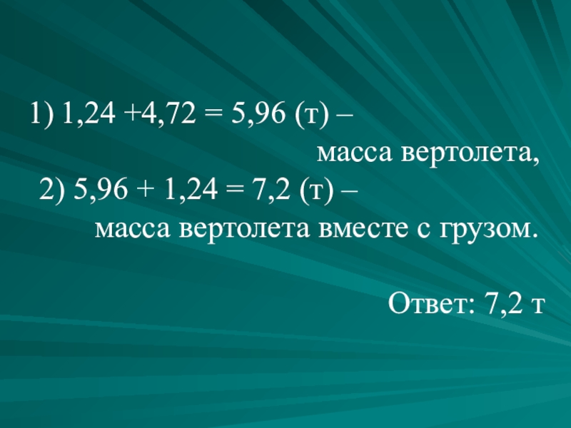2) 5,96 + 1,24 = 7,2 (т) –