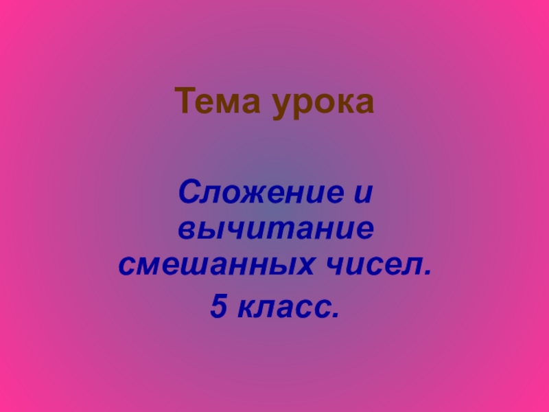 Тема урокаСложение и вычитание смешанных чисел.5 класс.