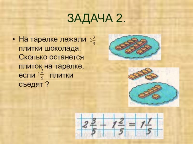 ЗАДАЧА 2.На тарелке лежали   плитки шоколада. Сколько останется плиток на тарелке, если