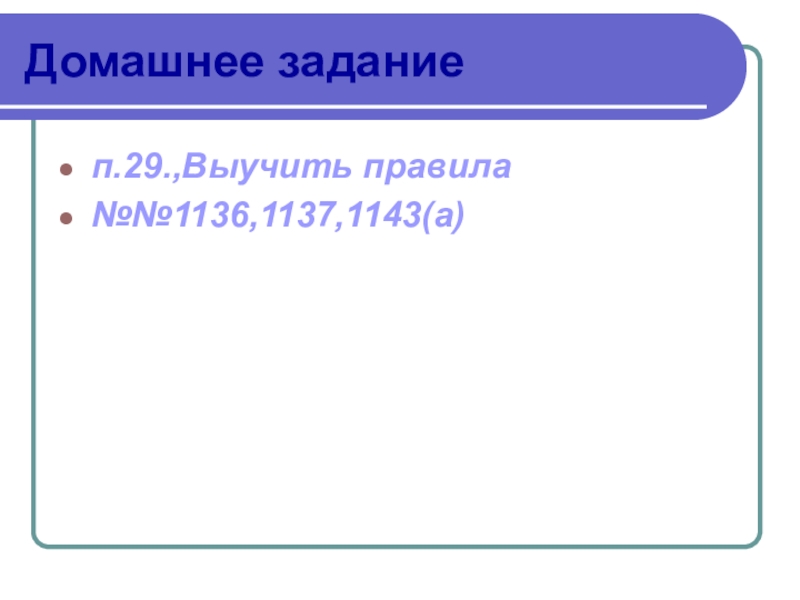 Домашнее заданиеп.29.,Выучить правила№№1136,1137,1143(а)