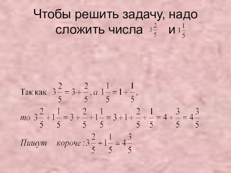 Слайд 6Чтобы решить задачу, надо сложить числа и