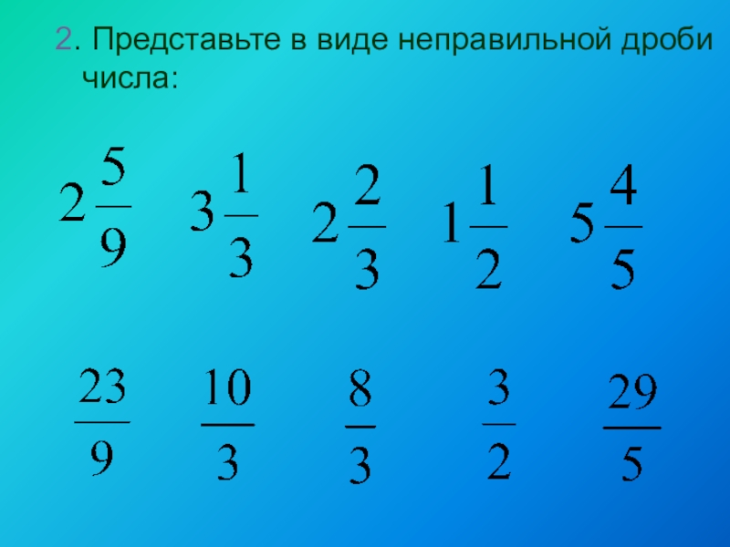 Слайд 32. Представьте в виде неправильной дроби числа: