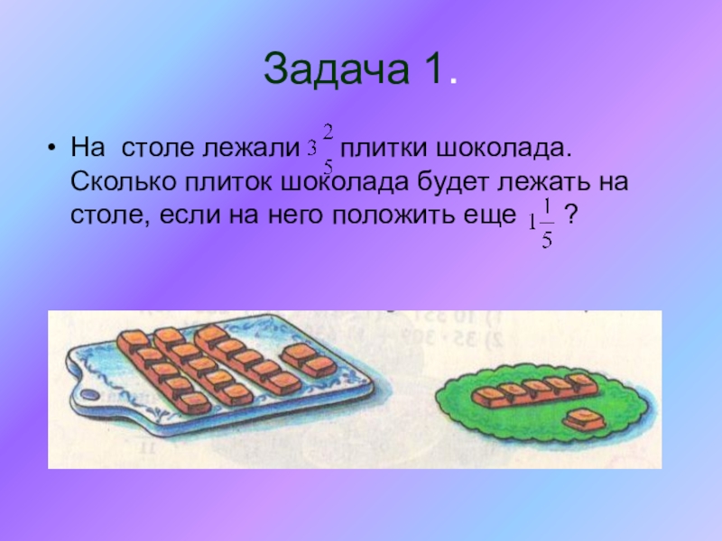 Задача 1.На столе лежали   плитки шоколада. Сколько плиток шоколада будет лежать на столе, если на