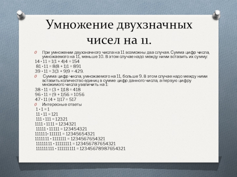 Слайд 26Умножение двухзначных чисел на 11.