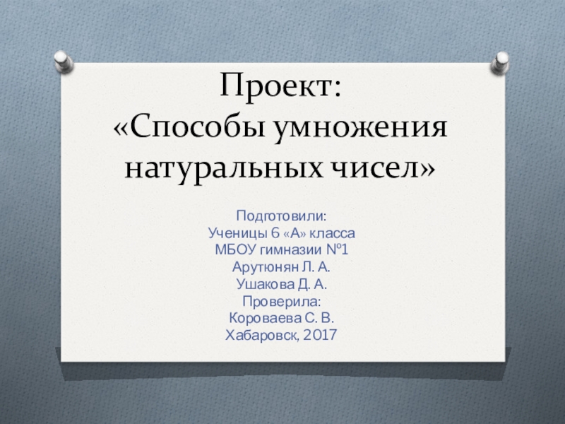 «Способы умножения натуральных чисел»