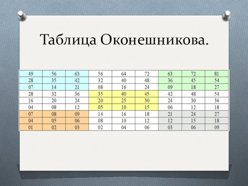 2.3.Таблица Оконешникова.