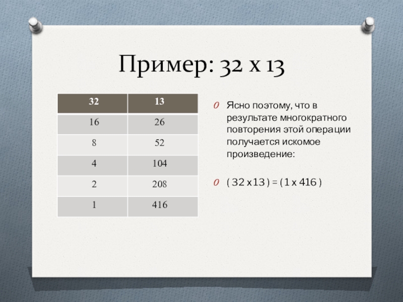 Слайд 9Пример: 32 х 13