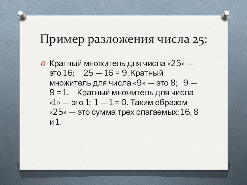 Слайд 19Пример разложения числа 25: