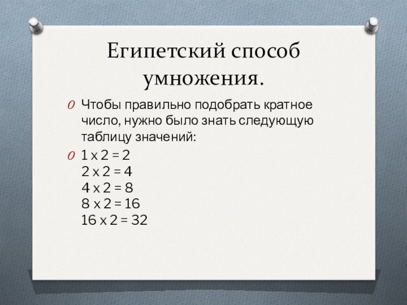 Слайд 18Египетский способ умножения.