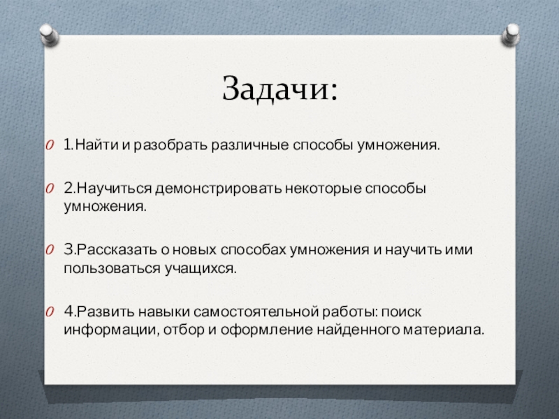 о новых способах умножения и научить ими пользоваться учащихся.