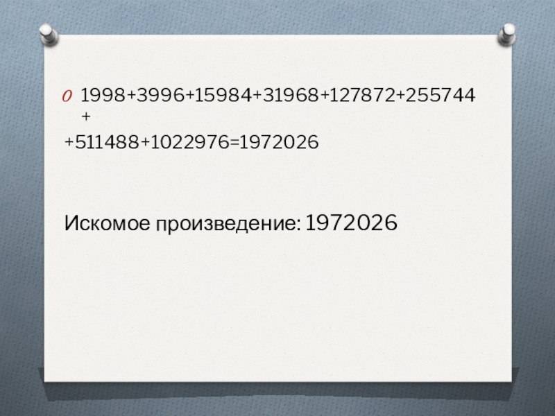 Слайд 121998+3996+15984+31968+127872+255744+
