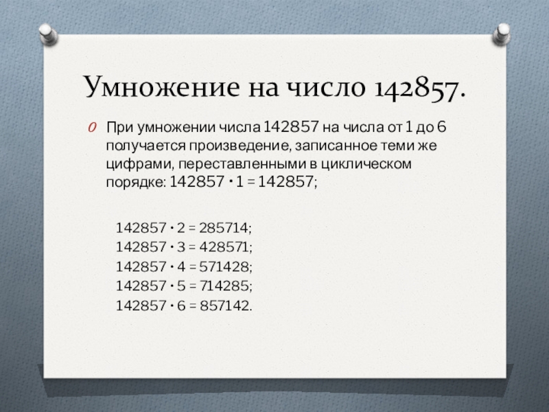 Слайд 27Умножение на число 142857.