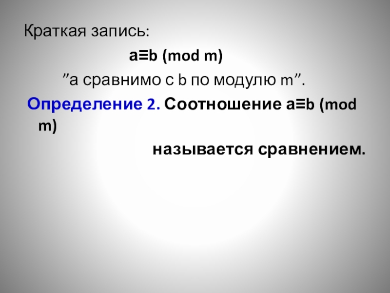 Определение 2. Соотношение а≡b (mod m)