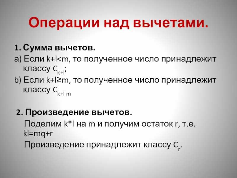 Слайд 12Операции над вычетами.