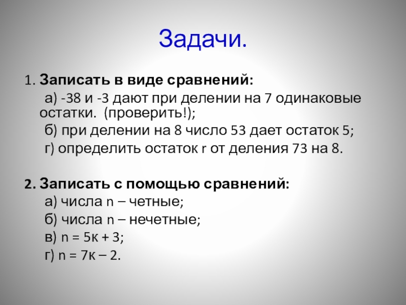 1. Записать в виде сравнений: