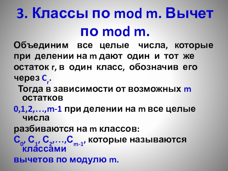 3. Классы по mod m. Вычет по mod m.