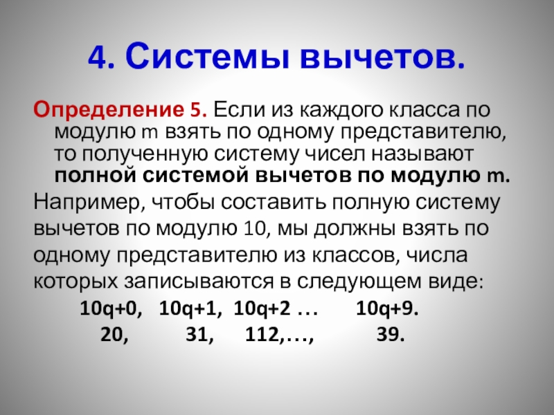 4. Системы вычетов.