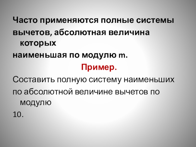 по абсолютной величине вычетов по модулю