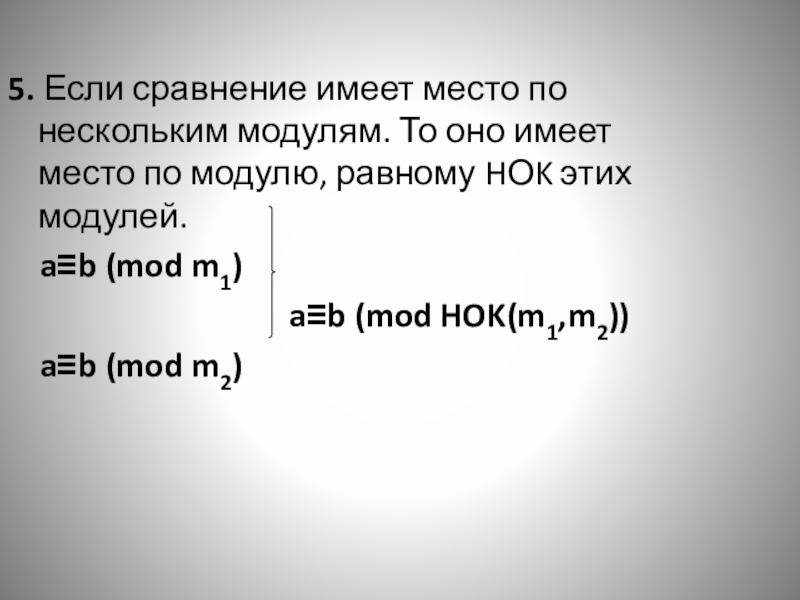 Слайд 95. Если сравнение имеет место по нескольким модулям. То оно имеет