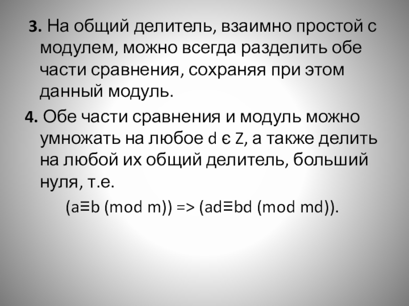 Слайд 8 3. На общий делитель, взаимно простой с модулем, можно всегда разделить