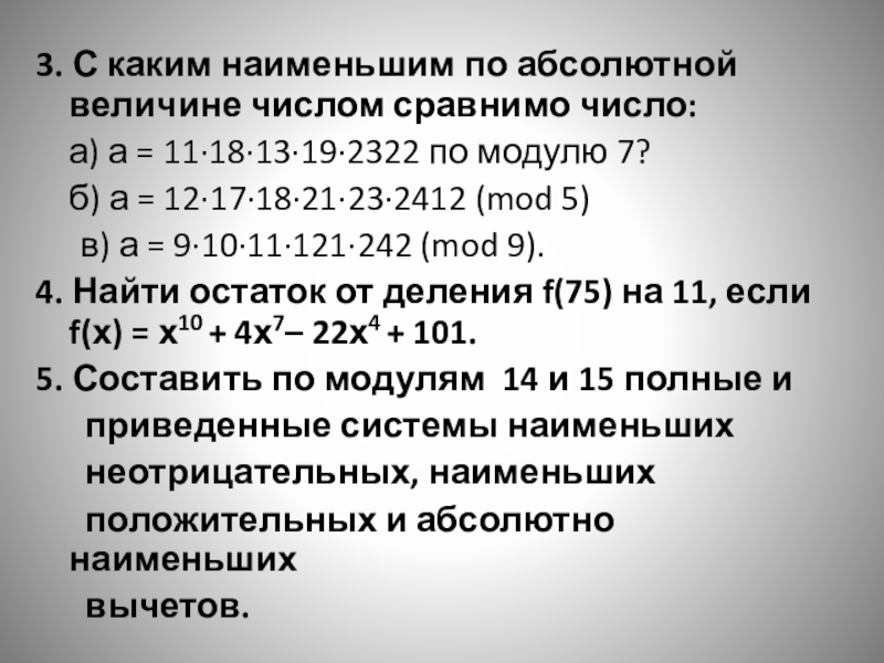 Слайд 203. С каким наименьшим по абсолютной величине числом сравнимо число: