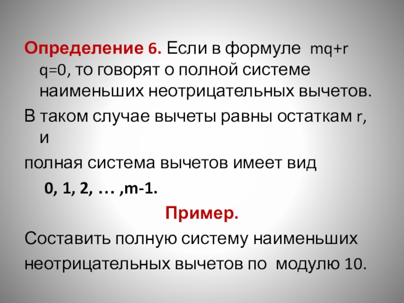 Слайд 15Определение 6. Если в формуле mq+r q=0, то говорят о