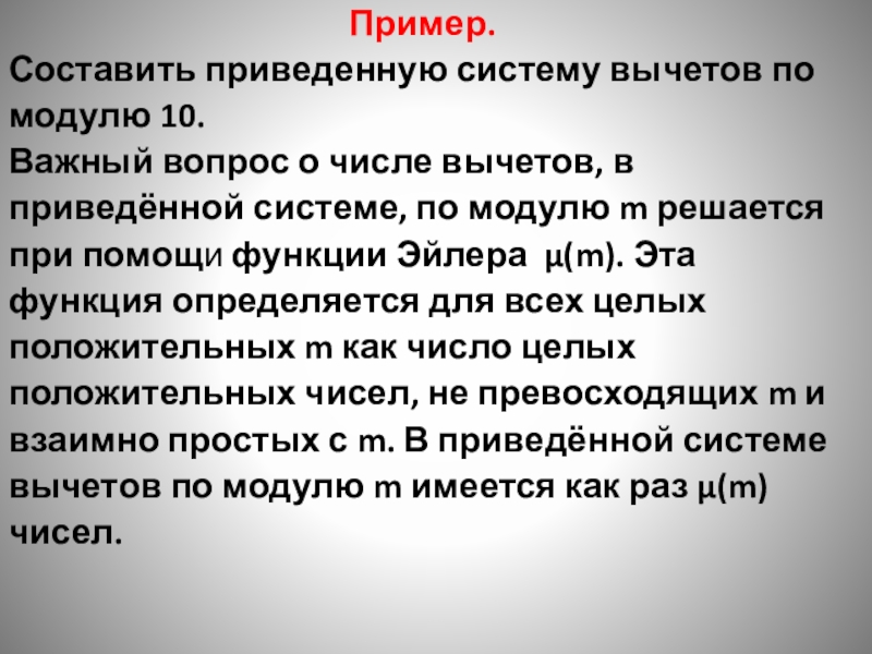 при помощи функции Эйлера μ(m). Эта
