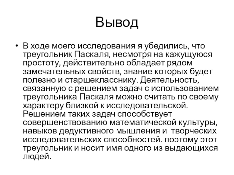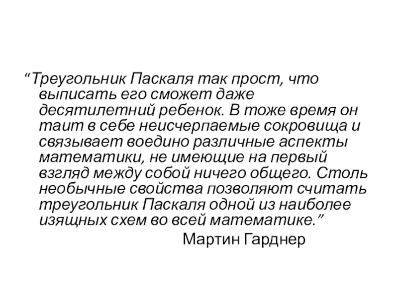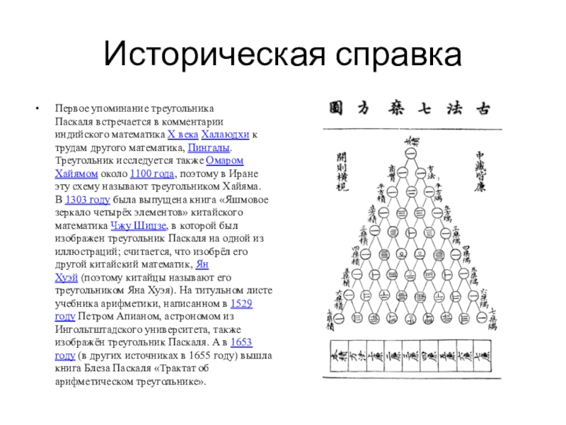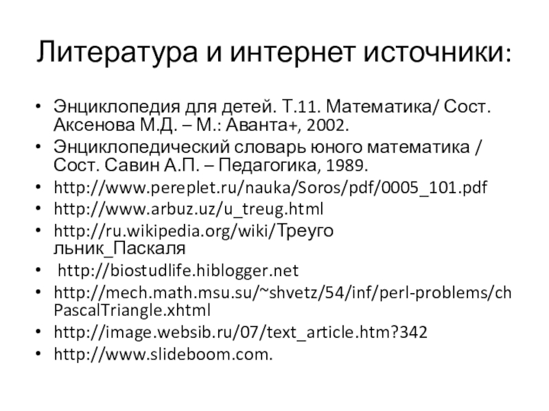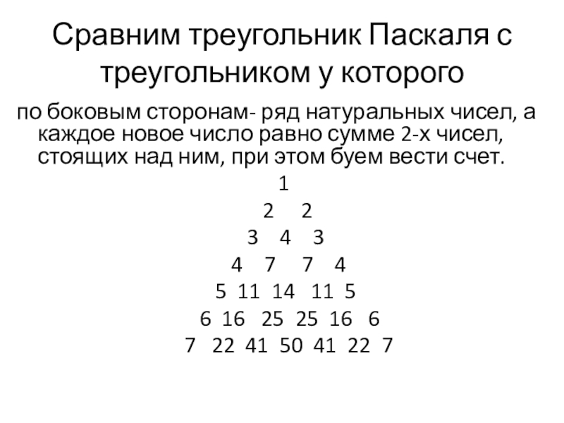 Найти и изучить имеющийся материал о треугольнике Паскаля