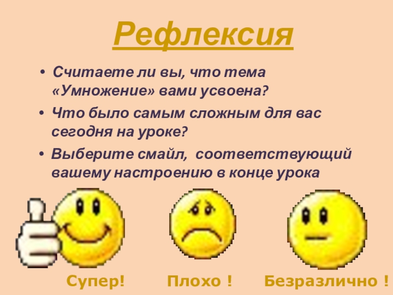 Выберите смайл, соответствующий вашему настроению в конце урока
