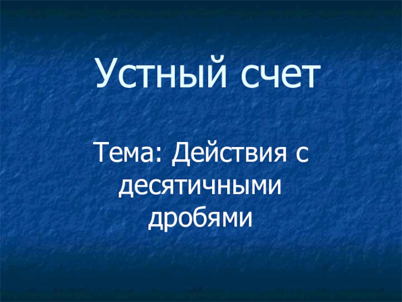 Презентация, доклад по теме Устный счет. Действия с десятичными дробями.