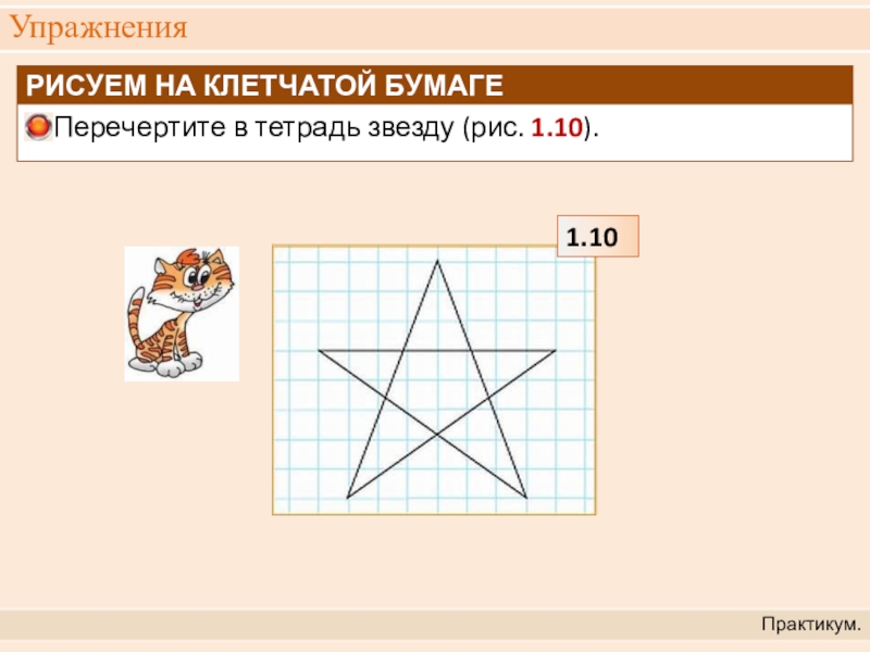 УпражненияПрактикум.Перечертите в тетрадь звезду (рис. 1.10).РИСУЕМ НА КЛЕТЧАТОЙ БУМАГЕ1.10