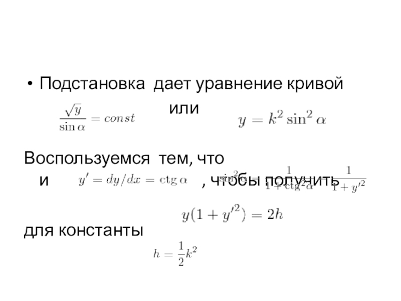 которой в каждой точке угол отрезка с вертикалью становится углом касательной к кривой, который она составляет с вертикалью. Если – скорость в точке и – угол, который составляет касательная с вертикалью, то кривая удовлетворяет уравнению