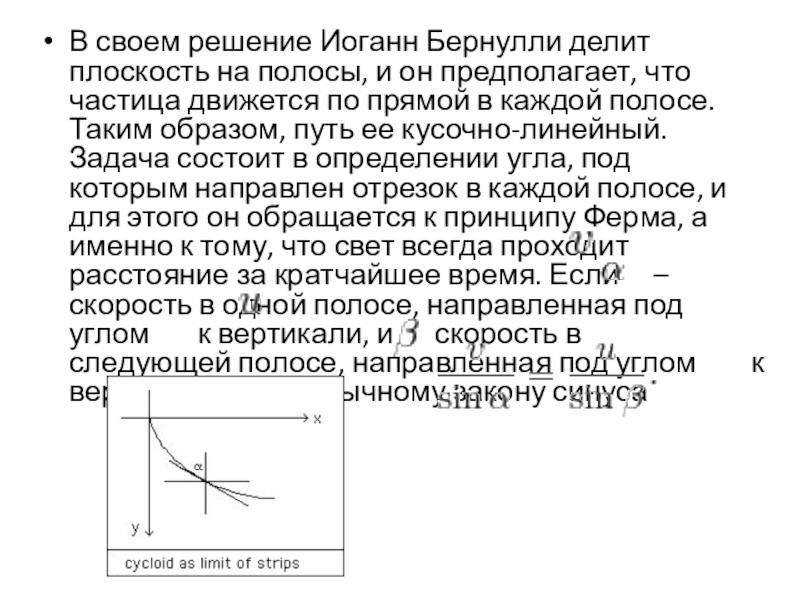 Слайд 9В своем решение Иоганн Бернулли делит плоскость на полосы, и он