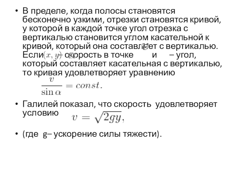 Слайд 10В пределе, когда полосы становятся бесконечно узкими, отрезки становятся кривой, у