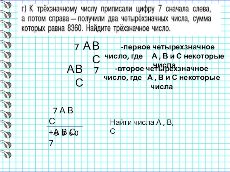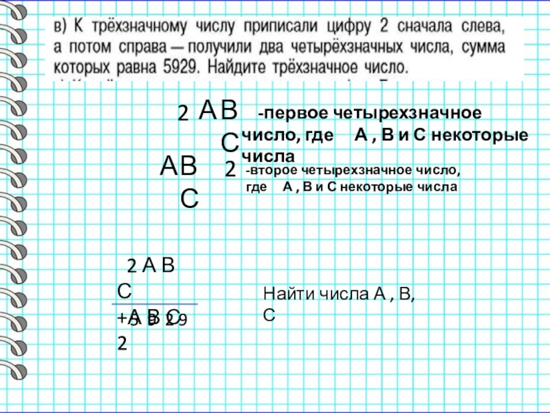 -второе четырехзначное число, где А , В и С некоторые числа