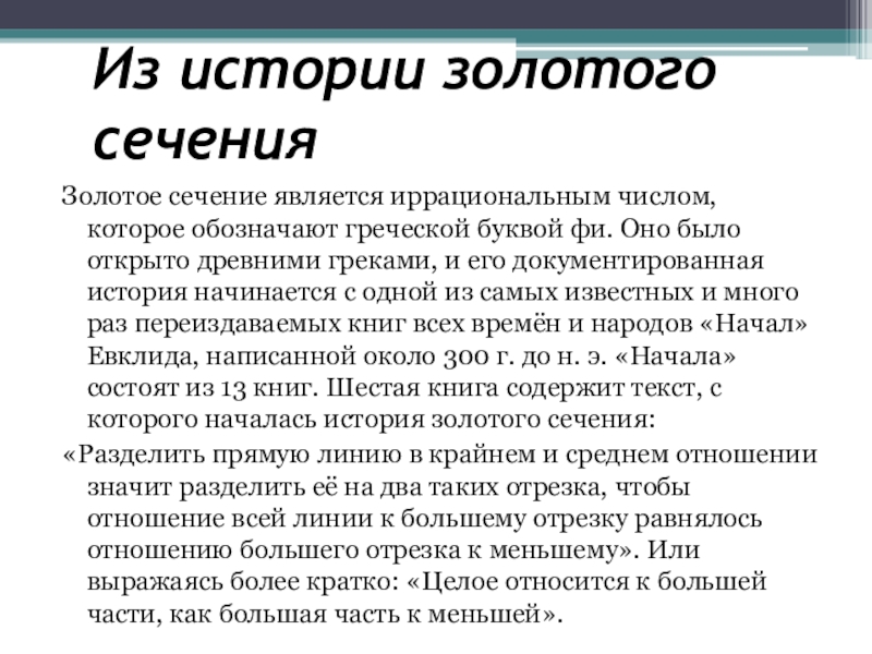 Там, где присутствует золотое сечение, ощущается красота и гармония.