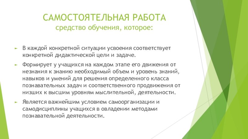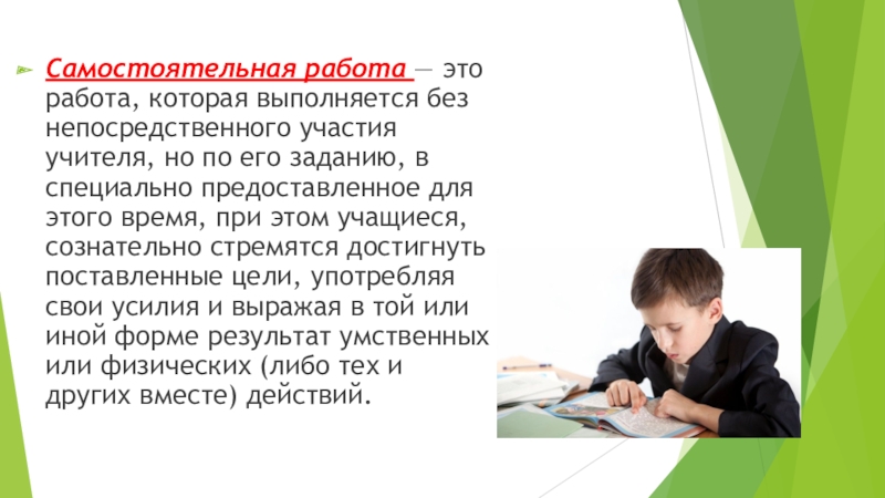 Слайд 3Самостоятельная работа — это работа, которая выполняется без непосредственного участия учителя,