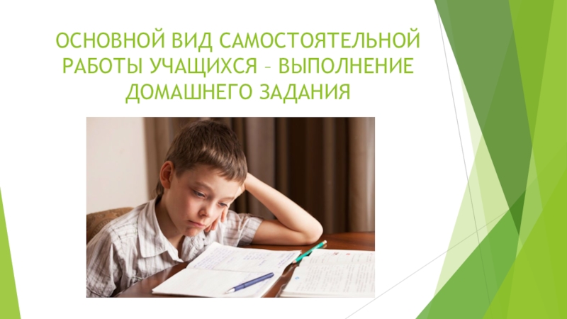 Слайд 11ОСНОВНОЙ ВИД САМОСТОЯТЕЛЬНОЙ РАБОТЫ УЧАЩИХСЯ – ВЫПОЛНЕНИЕ ДОМАШНЕГО ЗАДАНИЯ