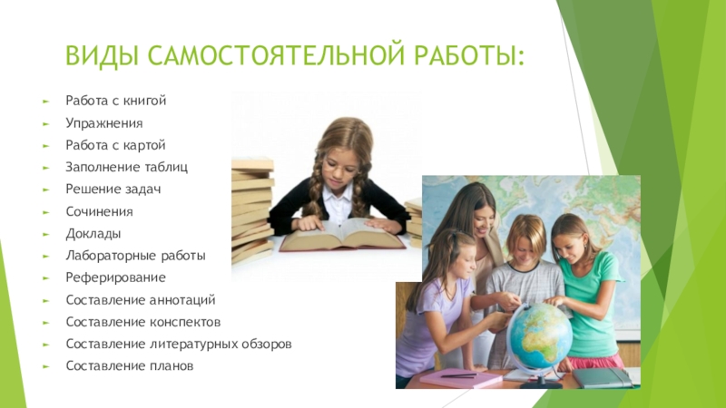 Слайд 8ВИДЫ САМОСТОЯТЕЛЬНОЙ РАБОТЫ: