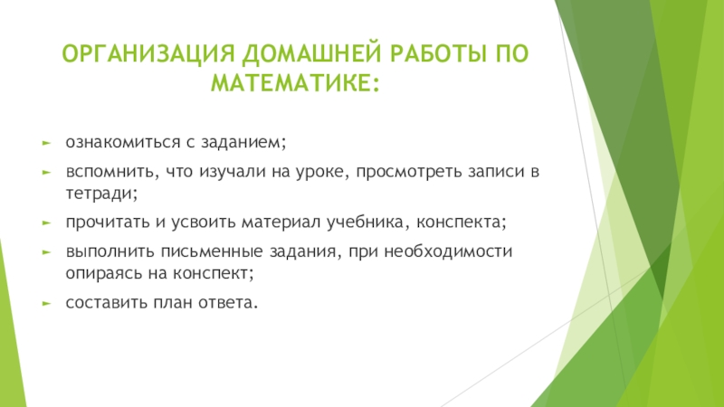 Слайд 12ОРГАНИЗАЦИЯ ДОМАШНЕЙ РАБОТЫ ПО МАТЕМАТИКЕ: