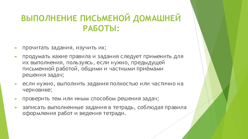 Слайд 13ВЫПОЛНЕНИЕ ПИСЬМЕНОЙ ДОМАШНЕЙ РАБОТЫ: