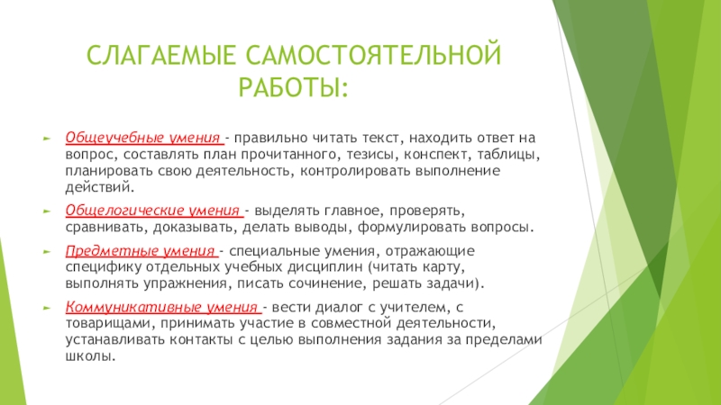 Слайд 7СЛАГАЕМЫЕ САМОСТОЯТЕЛЬНОЙ РАБОТЫ: