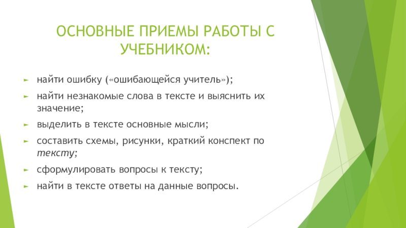 Слайд 10ОСНОВНЫЕ ПРИЕМЫ РАБОТЫ С УЧЕБНИКОМ: