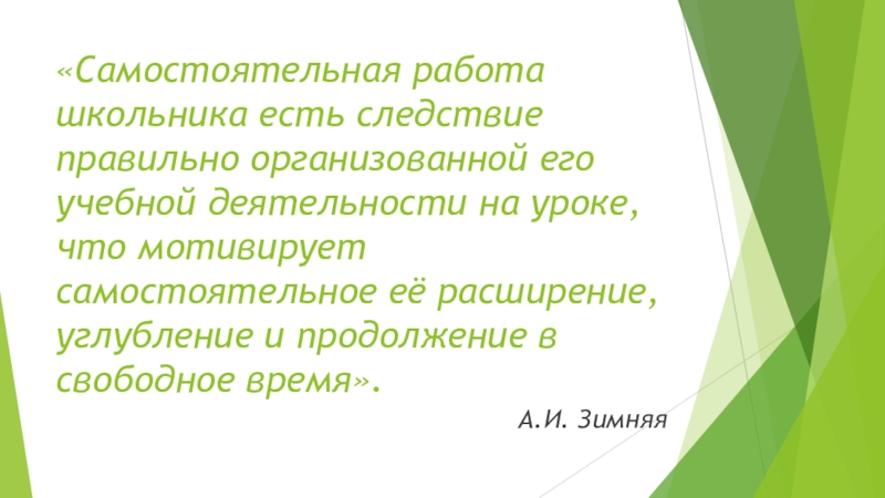 Слайд 15«Самостоятельная работа школьника есть следствие правильно организованной его учебной деятельности на