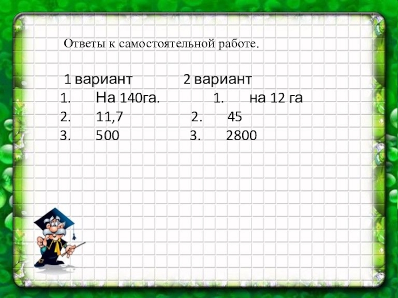 Ответы к самостоятельной работе.1 вариант			2 вариант   На 140га.