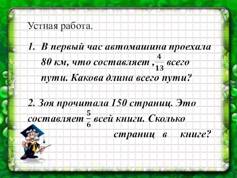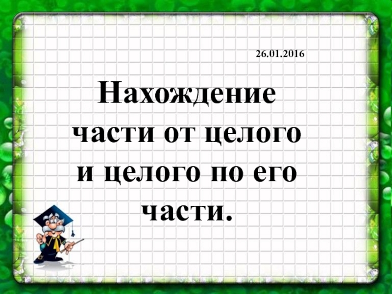 Презентация, доклад по темеНахождение части от целого и целого по его части